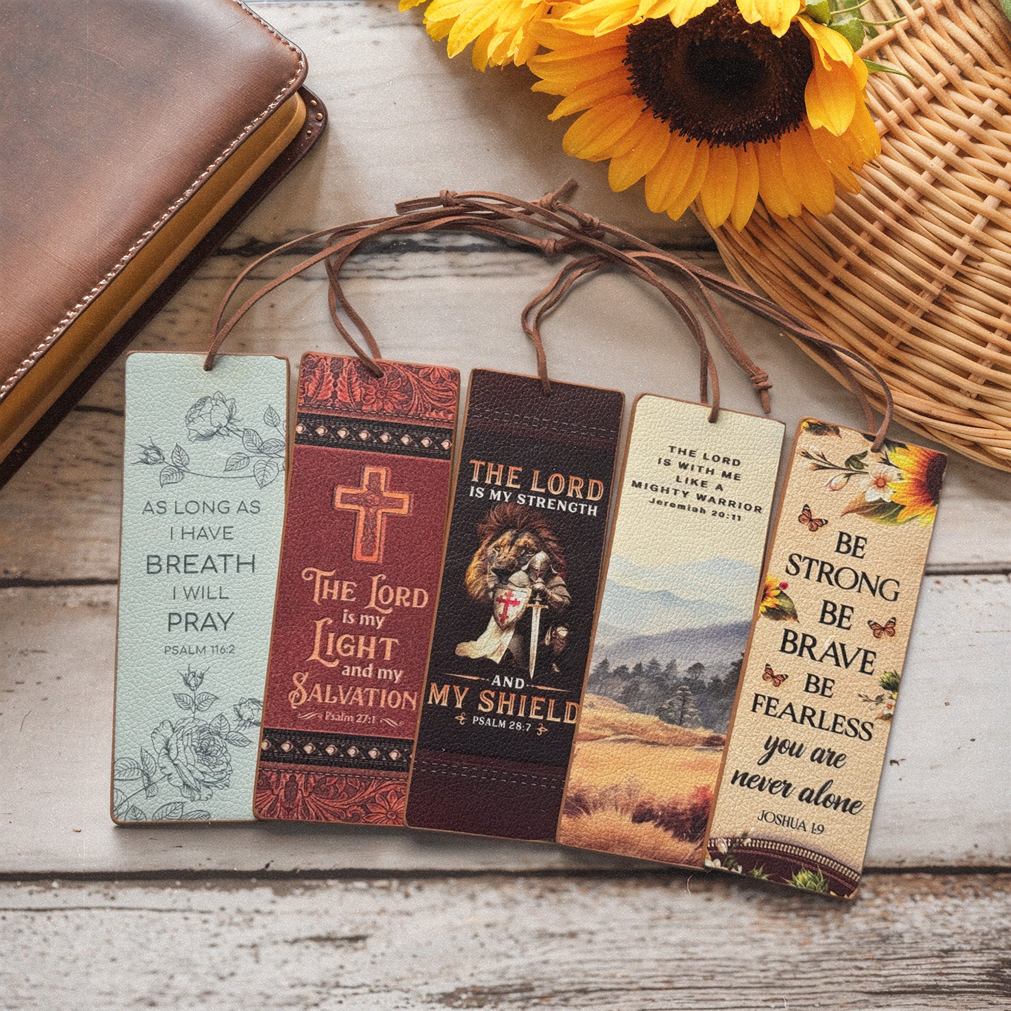 Tuck truth into every chapter with our Mystery Leather Scripture Bookmark Set—an inspiring collection of beautifully designed bookmarks, each one imprinted with a powerful verse from God’s Word.